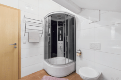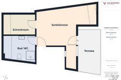 Dachgeschoß: 1 großes Schlafzimmer mit Ausgang auf die Terrasse und ein Bad mit Dusche/WC;