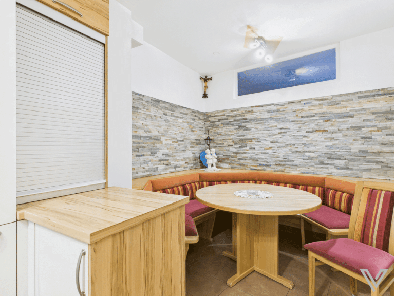 - die Einbauküche und der Einbauschrank im Vorhaus bleiben im Haus, ansonsten wird das Wohnhaus unmöbliert übergeben;