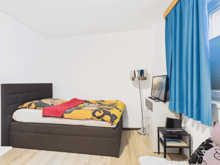 - die Zimmer sind mit Fliesen, Vinyl und Laminatböden ausgestattet;