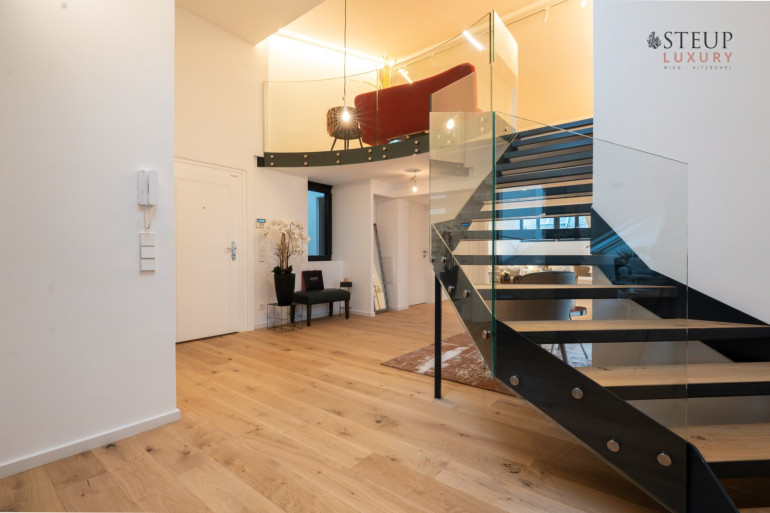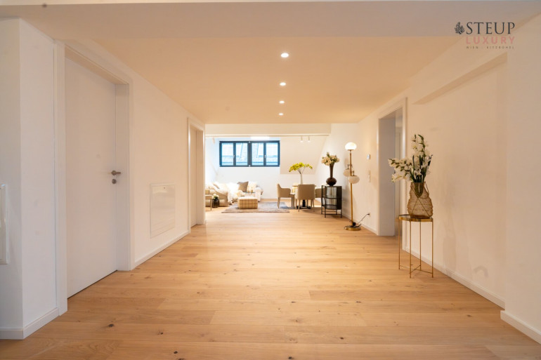 Dieses exklusive Penthouse wurde 2024/2025 komplett neu ausgebaut und vereint modernes Loft-Ambiente mit hochwertigem Wohnkomfort. Mit dem Lift gelangen Sie direkt vor die Eingangstüre. Bereits der großzügige Vorraum vermittelt ein Gefühl von Weite und Eleganz.