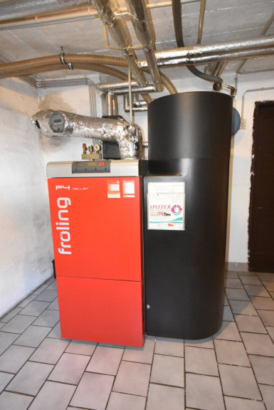 Die Pelletsheizung wird durch die bestehende Solaranlage unterstützt! Im Obergeschoss sind noch zwei Räume zum Sanieren, der erste Stock ist generalsaniert!