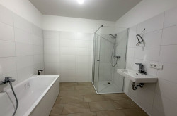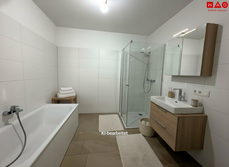 - Badezimmer mit Wanne und Dusche sowie einem Waschbecken