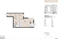 Die Raumaufteilung dieser im Dachgeschoss (4. Liftstock) der Stiege 1 gelegenen Neubauwohnung ist wie folgt: