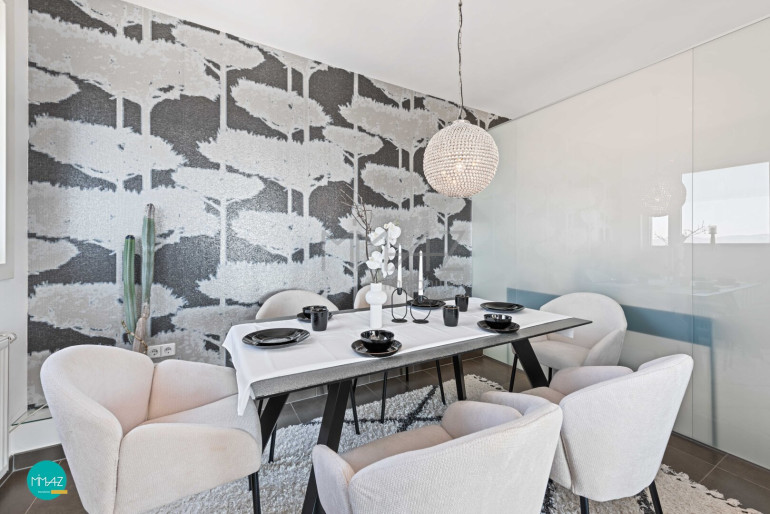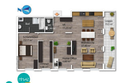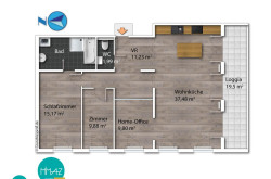 Auf einer Wohnnutzfläche von ca. 115m² (inkl. Loggia) stehen neben der großzügigen Wohnküche noch 2 Schlafzimmer und ein Ess- oder Home-office Bereich, der als 4. abgetrenntes Zimmer genutzt werden könnte, zur Verfügung. Ein ideales Zuhause für die unterschiedlichen Bedürfnisse von Singles, Paaren oder Familien, die Wert auf einen besonderen Wohnkomfort legen, der sich von der Masse abhebt.