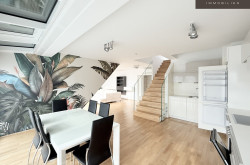 Auf der 1. Ebene der Wohnung befinden sich die zentralen Aufenthaltsräume sowie die schöne moderne Küche. Die 2. Ebene, zugleich das 2. Dachgeschoß, bietet zusätzlichen Raum und direkten Zugang zur großen Dachterrasse, die zum Entspannen und Genießen einlädt.
