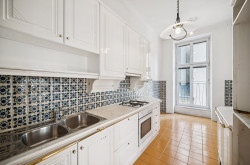 Die Wohnung liegt im 3. Obergeschoss eines gepflegten, großbürgerlichen Hauses der Jahrhundertwende, das in den 50er Jahren neu aufgebaut wurde. Hohe Decken und große Fenster verleihen ihr den klassischen Altbaucharme und schaffen ein großzügiges, helles Raumgefühl. Dank der Südwest-Ausrichtung genießen Sie sonnendurchflutete Zimmer. Derzeit umfasst die modernisierungsbedürftige Wohnung 3 Zimmer, eine getrennte Küche, ein Badezimmer und einen Abstellraum. Die Aufteilung ermöglicht es, die vorhandenen Zimmer flexibel als Schlaf-, Wohn- oder Arbeitsbereich zu nutzen oder den Grundriss nach den eigenen Wünschen neu zu gestalten. Die Innenwände lassen sich leicht verändern, um Räume zu öffnen, zu verbinden oder völlig neu zu definieren. So bietet auch die großzügige Küche mit einem raumhohen Fenster, das den Charme eines französischen Balkons entfaltet, viel Raum für Ihre kreativen Gestaltungsideen: Sie kann modernisiert oder geöffnet werden, um eine phantastische Wohn- Koch und Esslandschaft zu schaffen. Oder Sie könnten die Küche in das große Eckzimmer verlegen, um mit dem bisherigen Küchenraum ein viertes Zimmer hinzuzugewinnen. Ein trockener Lagerraum im Gewölbe des Hauses - Ihr privater Weinkeller, wenn Sie es so wollen - ergänzt das Raumangebot.