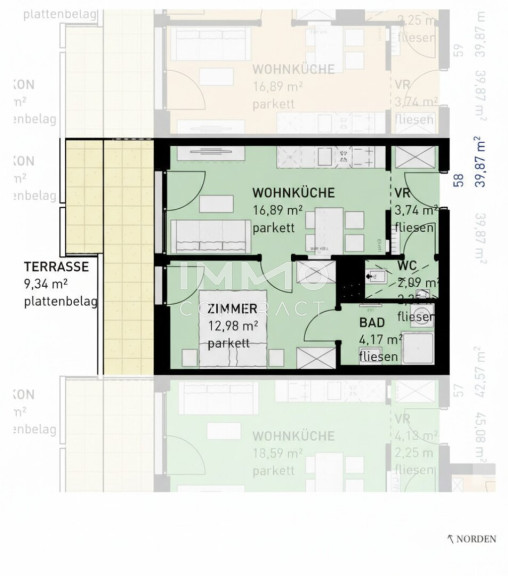 Alle Einheiten werden schlüsselfertig übergeben — Sanitärinstallationen, Fliesen und Parkett sind im Kaufpreis enthalten. Genauere Angaben zur Ausstattung entnehmen Sie bitte der Leistungsbeschreibung im Booklet.