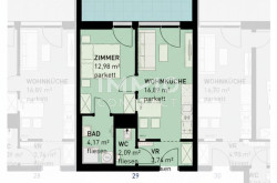 Alle Einheiten werden schlüsselfertig übergeben — Sanitärinstallationen, Fliesen und Parkett sind im Kaufpreis enthalten. Genauere Angaben zur Ausstattung entnehmen Sie bitte der Leistungsbeschreibung im Booklet.