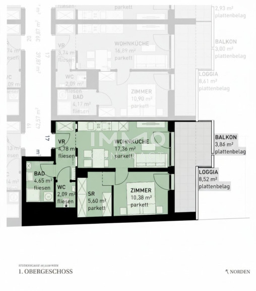 Alle Einheiten werden schlüsselfertig übergeben — Sanitärinstallationen, Fliesen und Parkett sind im Kaufpreis enthalten. Genauere Angaben zur Ausstattung entnehmen Sie bitte der Leistungsbeschreibung im Booklet.