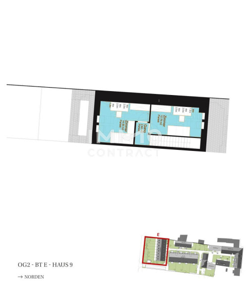 - 20 Eigentumswohnungen und 16 Reihenhäuser auf 5 Baukörper verteilt