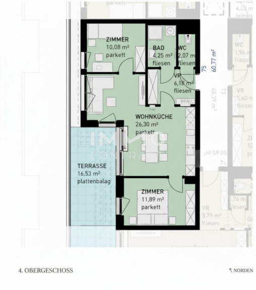 Alle Einheiten werden schlüsselfertig übergeben — Sanitärinstallationen, Fliesen und Parkett sind im Kaufpreis enthalten. Genauere Angaben zur Ausstattung entnehmen Sie bitte der Leistungsbeschreibung im Booklet.