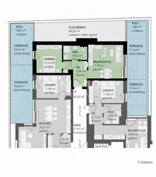 - Jede Wohnung mit privater Freifläche (Loggia, Balkon, Terrasse, Eigengarten)
