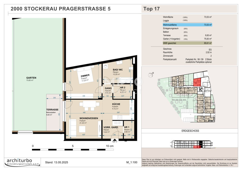 - Tiefgarage mit 78 Parkplätzen, 11 Stellplätze im Freien