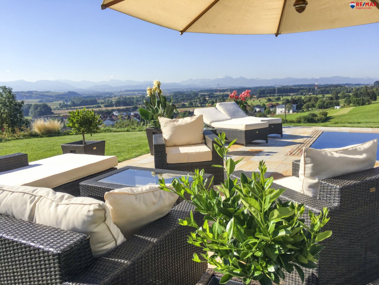Die leicht erhöhte Lage des Hauses eröffnet insbesondere vom Wintergarten sowie vom Büro aus einen fantastischen Fernblick, der jeden Tag aufs Neue begeistert.