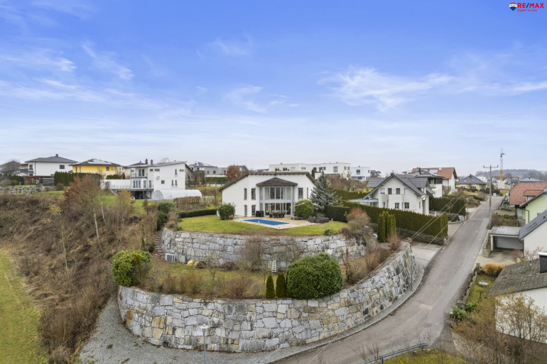 Direkt im Ortszentrum und zugleich am Beginn einer beschaulichen Einfamilienhaussiedlung befindet sich dieses hochwertig ausgestattete Einfamilienhaus in traumhaft idyllischer Lage.