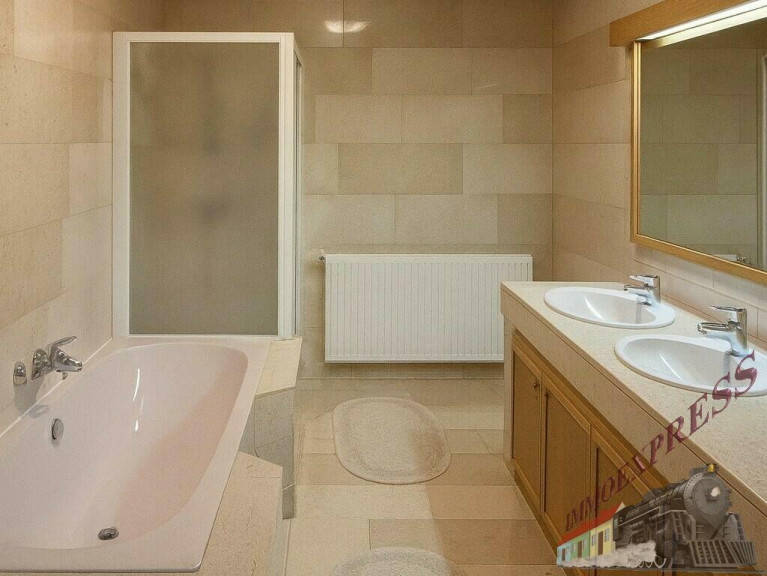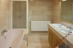 - Badezimmer mit Doppel- Waschbecken, Dusche und Badewanne
