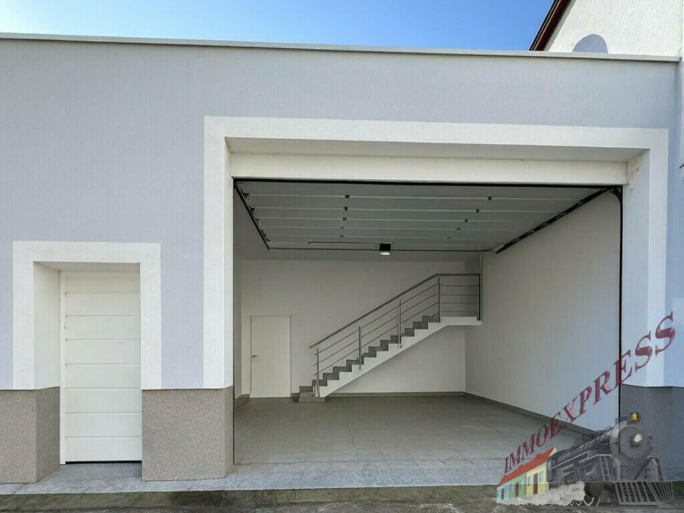 Das Untergeschoß hat einen separaten und asphaltierten Vorplatz mit einem großen Sektionaltor, damit Sie mit diversen Fahrzeugen direkt reinfahren können.