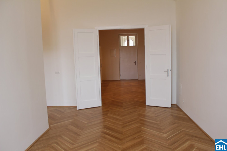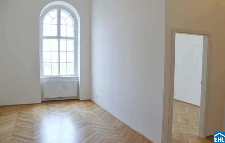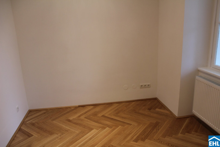 - Wohnräume: Parkettboden, Sanitärräume: Fliesen