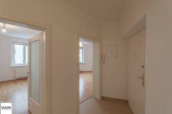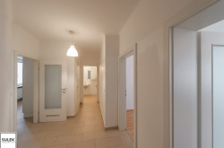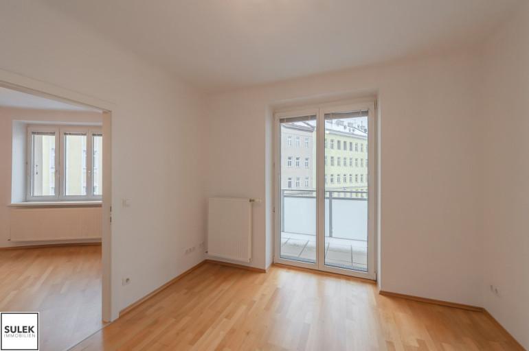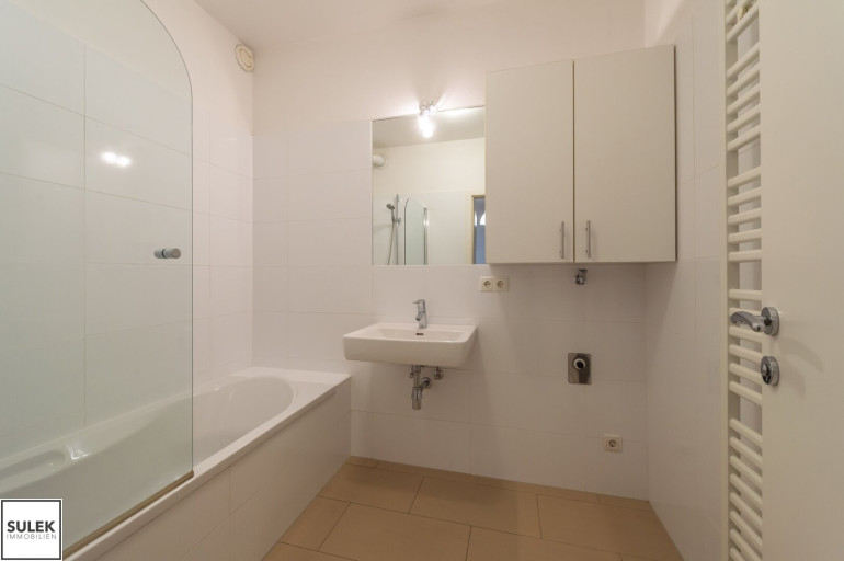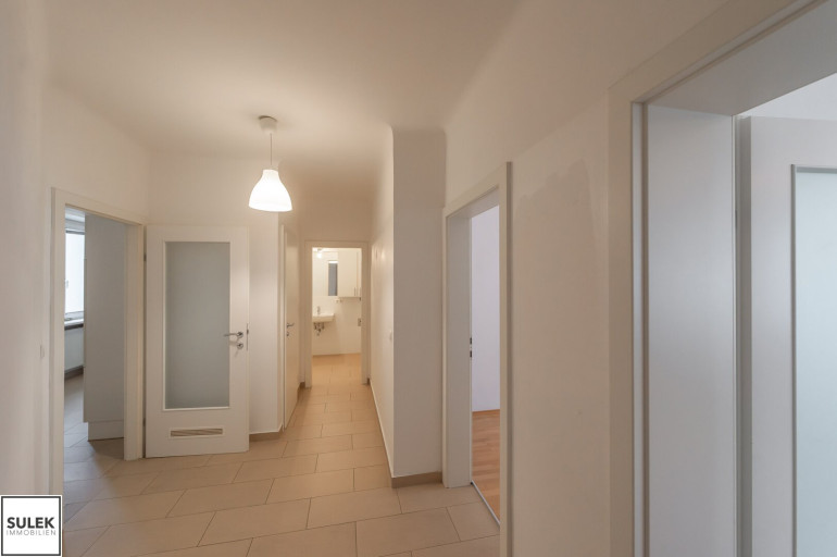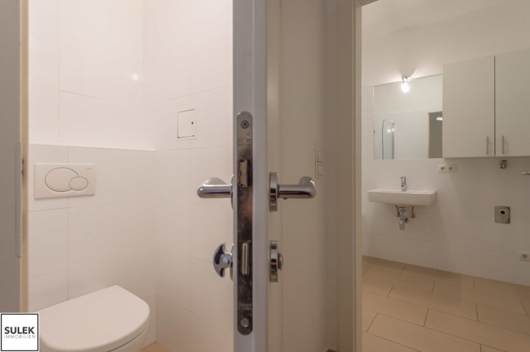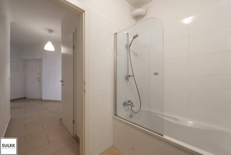 Über den Vorraum erreichen Sie rechter Hand zunächst das Wohnzimmer, über das Sie wiederum zu einem der beiden Schlafzimmer gelangen. Dieses verfügt auch über einen süd-westlich ausgerichteten Balkon. Nach dem Wohnzimmer befindet sich das 2. Schlafzimmer, welches zentral über den Vorraum zu erreichen ist. Verlassen Sie den Eingangsbereich stirnseitig, so finden Sie das hochwertig ausgestattete Badezimmer ( Badewanne mit Glasduschwand, Handtuchheizkörper). Daneben liegt die separate Toilette. Verlässt man den Vorraum linker Hand, so gelangt man in die voll ausgestattete und hofseitig orientierte Küche.
