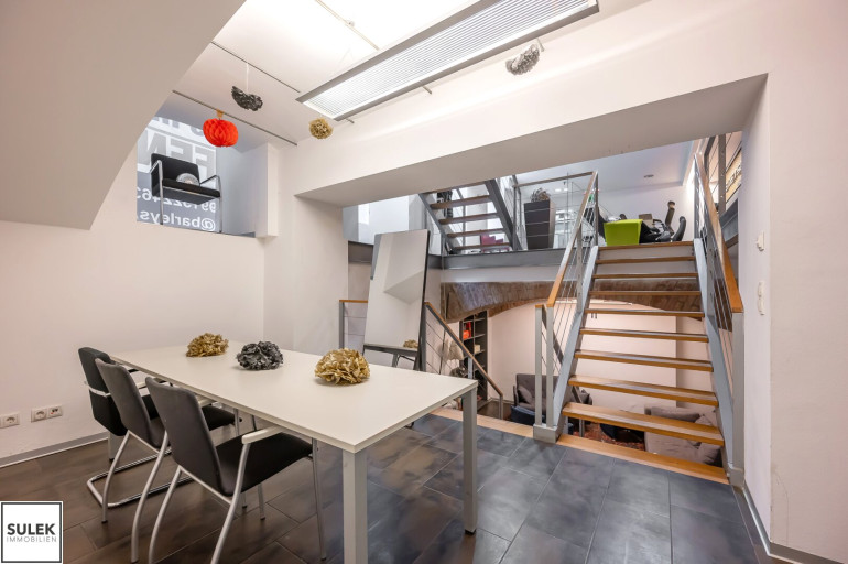 Die Liegenschaft umfasst mehrere Einheiten und bietet eine ideale Kombination aus Büro-, Werkstatt- und Lagerflächen. Neben einem großzügigen Souterrain für Lager- und Werkstattzwecke stehen ein helles Erdgeschoss mit Galerie und attraktiver Glasfläche zur Verfügung sowie zwei separates Büro, wodurch sich flexible Nutzungsmöglichkeiten für unterschiedlichste Geschäftsmodelle ergeben.