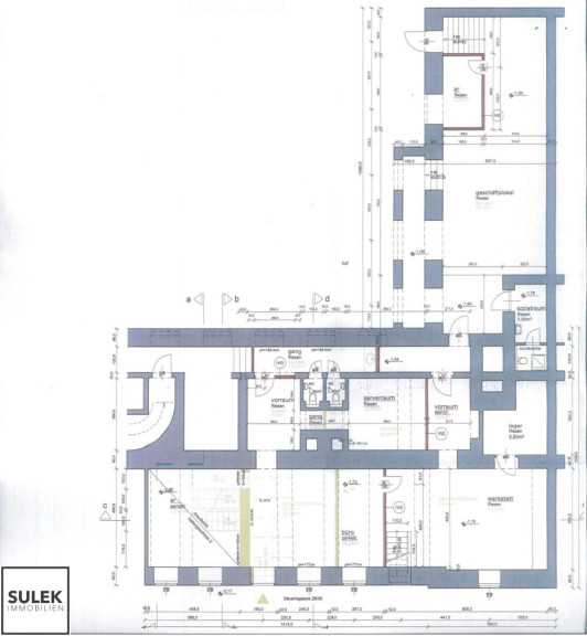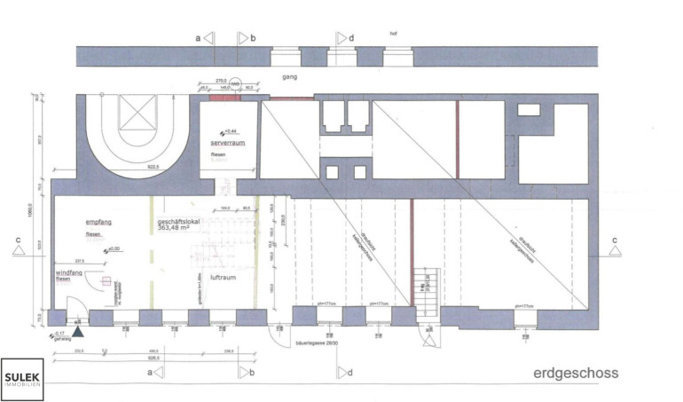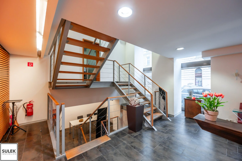 - zwei Straßeneingänge (EG und Souterrain) sowie über Stiegenhaus