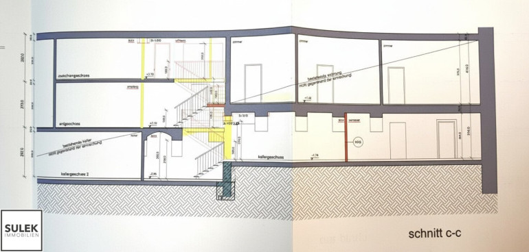 - Flächenaufstellung: rd. 358 m² verteilt auf Kellergeschoss, Erdgeschoss und Hochparterre