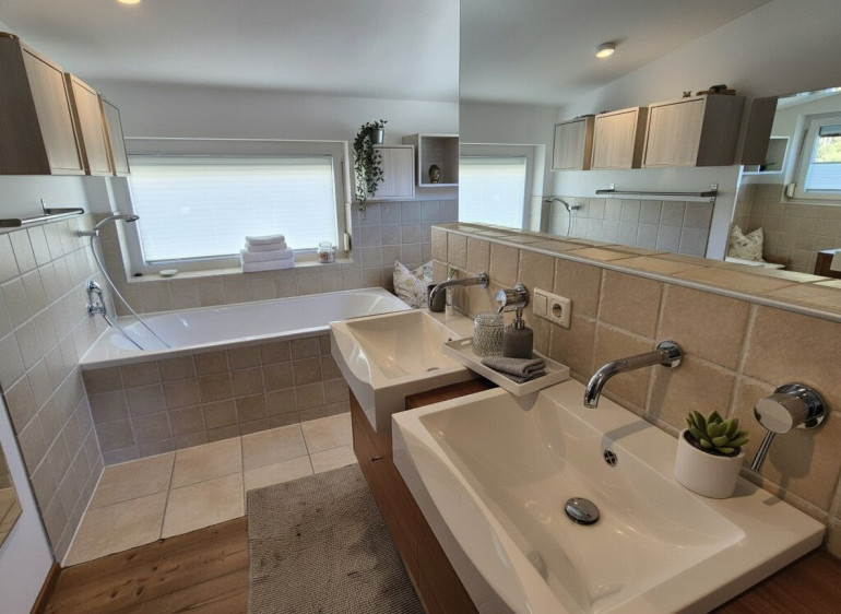 Dieses Haus bietet Ihnen alles, was das Herz begehrt: Von der gemütlichen Wohnküche mit moderner Einbauküche, die zum gemeinsamen Kochen und Verweilen einlädt, bis hin zu zwei praktischen WCs und einem Badezimmer mit Fenster und entspannender Badewanne. Die hochwertigen Fliesen und die behagliche Fußbodenheizung sorgen für ein angenehmes Wohnklima, ergänzt durch einen Heizofen und eine zentrale Heizungsanlage, die für wohlige Wärme an kalten Tagen garantieren.