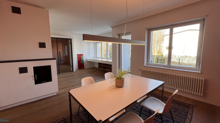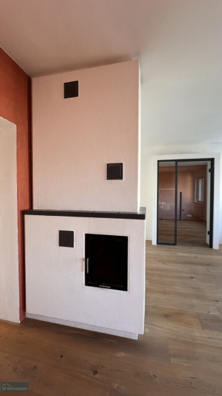 Ein besonderes Highlight ist der einladende Wohnbereich mit stilvollem Kachelofen, der für eine warme und behagliche Atmosphäre sorgt. Von hier aus gelangt man auf den Balkon, der mit einem herrlichen Blick ins Grüne sowie Richtung Stadt begeistert – ein perfekter Ort zum Entspannen.
