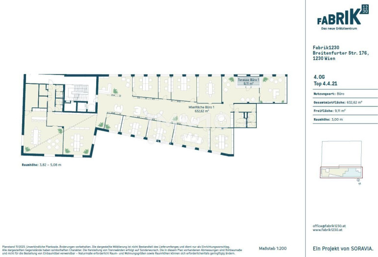 Mitten im aufstrebenden Stadtteil Atzgersdorf im 23. Bezirk in Wien bietet die Fabik1230 von SORAVIA moderne, flexibel gestaltbare Büro-, Ordinations- und Gewerbeflächen in einem außergewöhnlichen Ambiente. Die Kombination aus historischem Industriecharme und zeitgemäßer Architektur schafft ein inspirierendes Arbeitsumfeld.