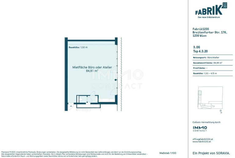 Mitten im aufstrebenden Stadtteil Atzgersdorf im 23. Bezirk in Wien bietet die Fabik1230 von SORAVIA moderne, flexibel gestaltbare Büro-, Ordinations- und Gewerbeflächen in einem außergewöhnlichen Ambiente. Die Kombination aus historischem Industriecharme und zeitgemäßer Architektur schafft ein inspirierendes Arbeitsumfeld.
