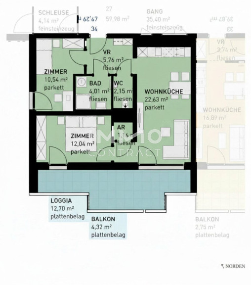- Jede Wohnung mit privater Freifläche (Loggia, Balkon, Terrasse, Eigengarten)