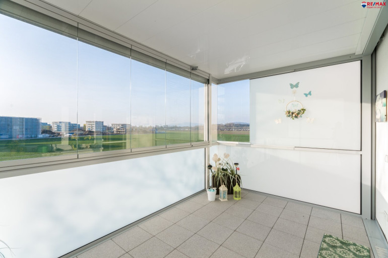 - verglaster Balkon mit elektrischem Sonnenschutz