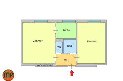 Die knapp 60 m² große 2-Zimmer-Wohnung überzeugt durch einen durchdachten Grundriss und ein freundliches Wohnambiente im 4. Stock mit Aufzug. Die klassische Raumaufteilung bietet ein getrenntes Badezimmer (mit Wanne) und WC, sowie separat begehbar das Wohnzimmer und das Schlafzimmer. Ein eigener Küchenraum bietet Platz für kulinarische Entfaltung unabhängig vom Wohnbereich. Der helle Laminatboden in den Wohnräumen sorgt für eine warme, einladende Atmosphäre; während hochwertige Fließenböden in den Nassräumen Langlebigkeit und einfache Reinigung garantieren. Ergänzend steht Ihnen im Keller Ihr eigenes Abteil zur Verfügung. Durch die Lage im 4. Stock profitieren Sie von viel Tageslicht und einer angenehmen Distanz zum Straßenraum.