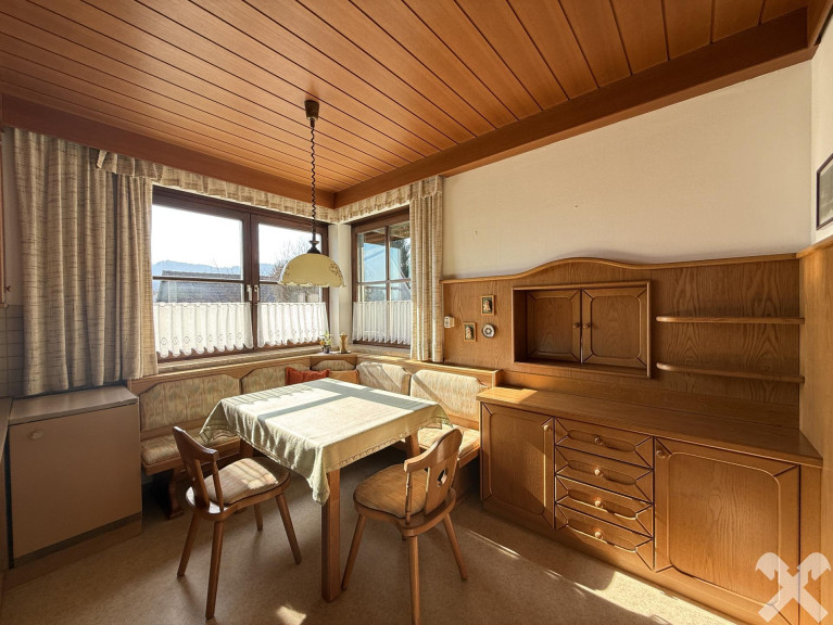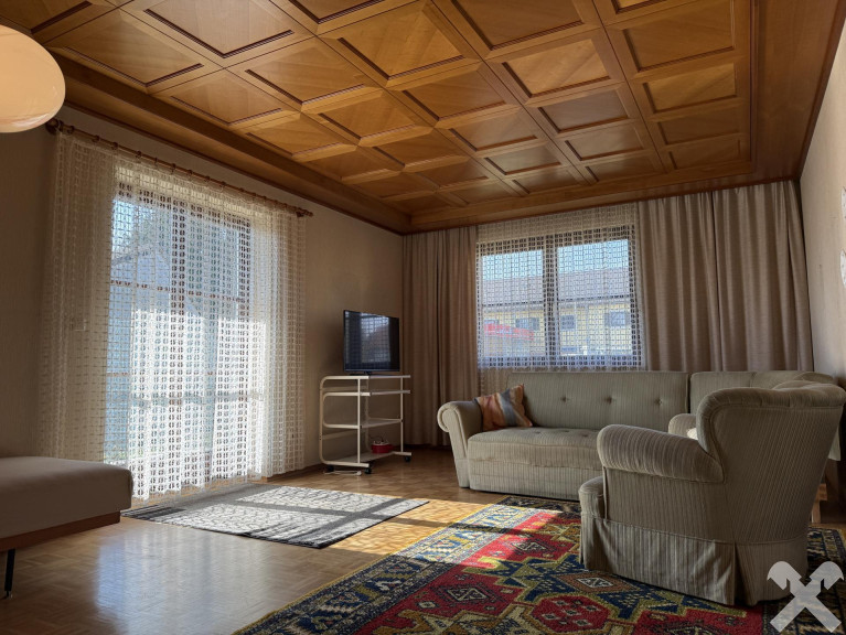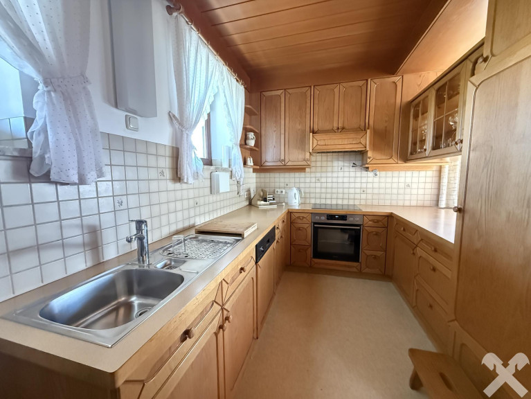 Die Immobilie verfügt über ca. 91 m² Wohnfläche mit einer praktischen Raumaufteilung: Küche mit Essbereich, Wohnzimmer mit direktem Zugang zur Terrasse, Schlafzimmer mit großem Fenster, Bad mit WC sowie ein geräumiger Vorraum mit Garderobe. Ein Holzofen in der Küche sorgt zusätzlich für eine gemütliche Atmosphäre.