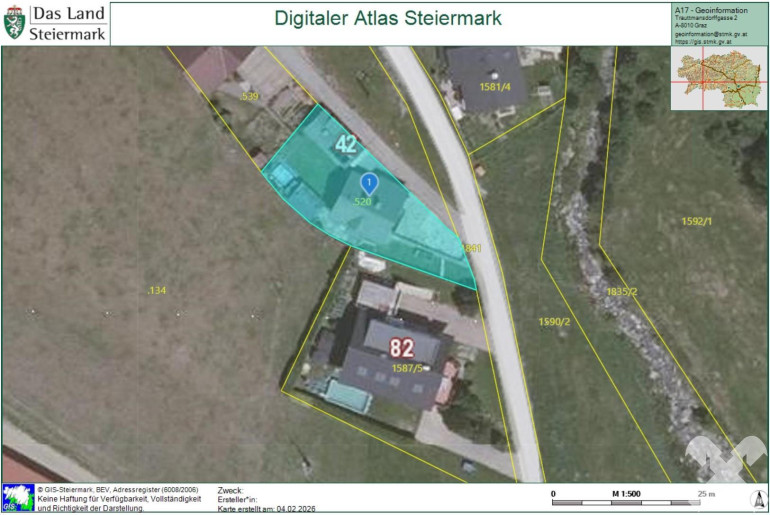 Die Liegenschaft befindet sich in sonniger und ruhiger Lage im Ortsteil Pachern der Gemeinde Oberwölz, etwa 2,5 km außerhalb des Ortszentrums der Marktgemeinde Niederwölz. Die Umgebung ist geprägt von einer naturnahen Landschaft mit hohem Erholungswert und bietet gleichzeitig eine angenehme Wohnqualität abseits des Trubels.
