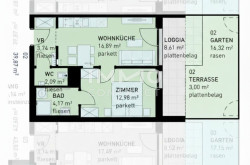 - Jede Wohnung mit privater Freifläche (Loggia, Balkon, Terrasse, Eigengarten)