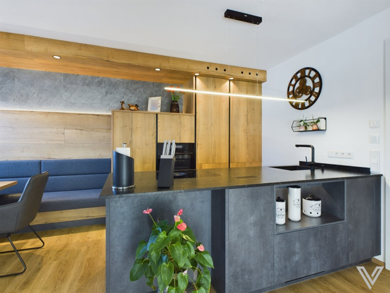 - Einbauküche mit extra Kochinsel, Markengeräten und Ausgang auf den Balkon