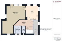 Eingangsbereich- Garderobe, Vorraum, Küche, große Wohnzimmer mit Ausgang in den Garten, Bad, WC;