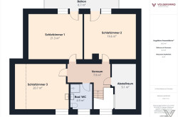 Vorraum, 3 Schlafzimmer, Abstellraum, Bad mit Dusche und WC;
