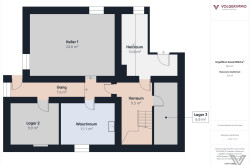 Heizraum, Waschraum und 3 Lagerräume;