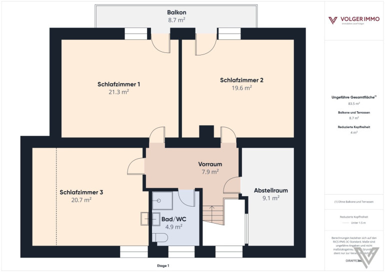 - Nutzfläche (inkl. Keller): ca. 245 m2