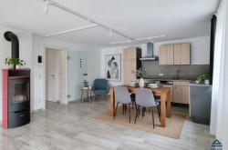 Die Wohnung mit einer Wohnfläche von ca. 65 m² zzgl. Terrasse mit ca. 27 m² und Süd-West-Ausrichtung befindet sich im Erdgeschoss eines im Jahr 2016 komplett sanierten Wohnhauses mit nur 2 Wohneinheiten. Neben der herrlichen Lage besticht diese Wohnung vor allem durch eine gut durchdachte Raumaufteilung. Über den attraktiv gestalteten Eingangsbereich gelangt man in die mit eleganten Bodenbelägen ausgestatteten Wohnräumlichkeiten. Das geräumige Wohnzimmer, das mit einer modernen Einbauküchenzeile (inkl. Geräten und Anschlussmöglichkeit für Geschirrspüler) ausgestattet ist, bietet viel Platz und ist aufgrund der schönen Panoramaverglasung, die den Blick auf die umgebende Berglandschaft eröffnet, hell und lichtdurchflutet. Hier sorgt zudem ein Kaminofen (Holz) für wohlige Wärme und gemütliche Atmosphäre. Die großzügige, sonnige Terrasse mit ca. 27 m² und südwestlicher Ausrichtung ist perfekt geschnitten und bietet einen großartigen Ausblick. Das Schlafzimmer ist, wie auch das Wohnzimmer, vom Vorraum aus begehbar und angenehm hell. Modern und elegant präsentiert sich auch das mit einer Dusche und schönem Fliesenbelag ausgestattete taghelle Badezimmer. Ein eigener Waschmaschinen-Anschluss ist im Keller vorhanden. Für ausreichend Stauraum sorgt ein großzügiger Abstellbereich mit ca. 80 m² im Dachboden.