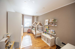 Im ersten Obergeschoss ist der private Rückzugsbereich mit einem großzügigen Elternschlafzimmer inklusive angrenzendem Schrankraum sowie drei weiteren hellen Zimmern, die ideal als Kinder-, Gäste- oder Arbeitszimmer genutzt werden können, zu finden. Ein luxuriöses Badezimmer mit Badewanne und Dusche rundet diese Etage ab.