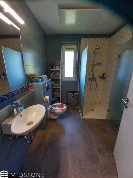 Die offene Wohnküche mit moderner Einbauküche bildet einen zentralen Treffpunkt und schafft eine einladende Atmosphäre für gemeinsame Zeit. Hochwertige Materialien wie Vinylböden und stilvolle Fliesen sorgen für ein gepflegtes und zeitgemäßes Wohngefühl. Zwei Badezimmer mit Fenstern sowie zwei WCs bieten zusätzlichen Komfort im Alltag.