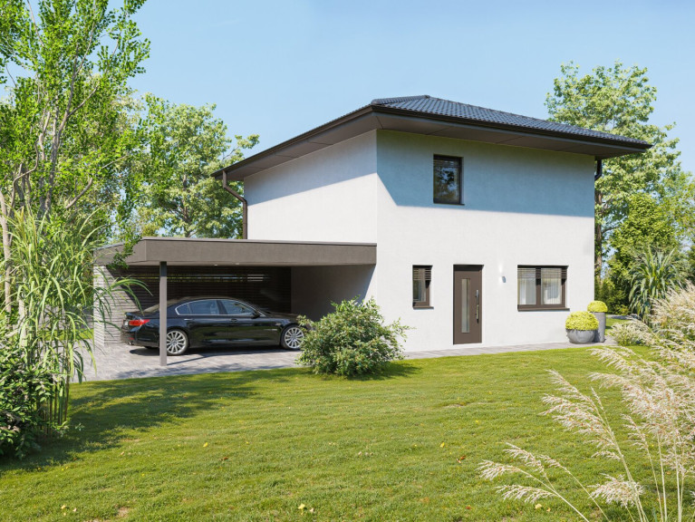 Mit einer Nettogrundfläche von ca. 119 m² (aufgeteilt auf 2 Etagen) bietet das stilvoll gestaltete Einfamilienhaus in bewährter Holzriegelbauweise ein komfortables Wohngefühl auf kompaktem Raum mit ausreichend Platz für die gesamte Familie.