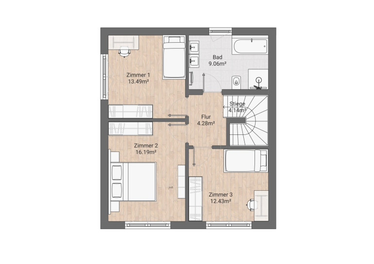 Mit einer Nettogrundfläche von ~119 m² (aufgeteilt auf 2 Etagen) bietet das stilvoll gestaltete Einfamilienhaus in bewährter Holzriegelbauweise ein komfortables Wohngefühl auf kompaktem Raum mit ausreichend Platz für die gesamte Familie.
