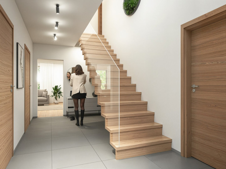 Mit einer Nettogrundfläche von ~143 m² (aufgeteilt auf 2 Etagen) bietet das stilvoll gestaltete Einfamilienhaus in bewährter Holzriegelbauweise ein komfortables Wohngefühl auf kompaktem Raum mit ausreichend Platz für die gesamte Familie.