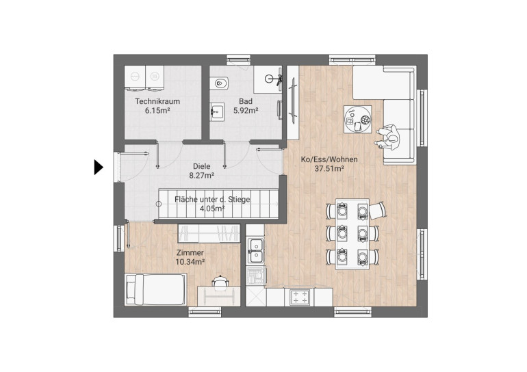 - Technikraum: 6,15 m²
