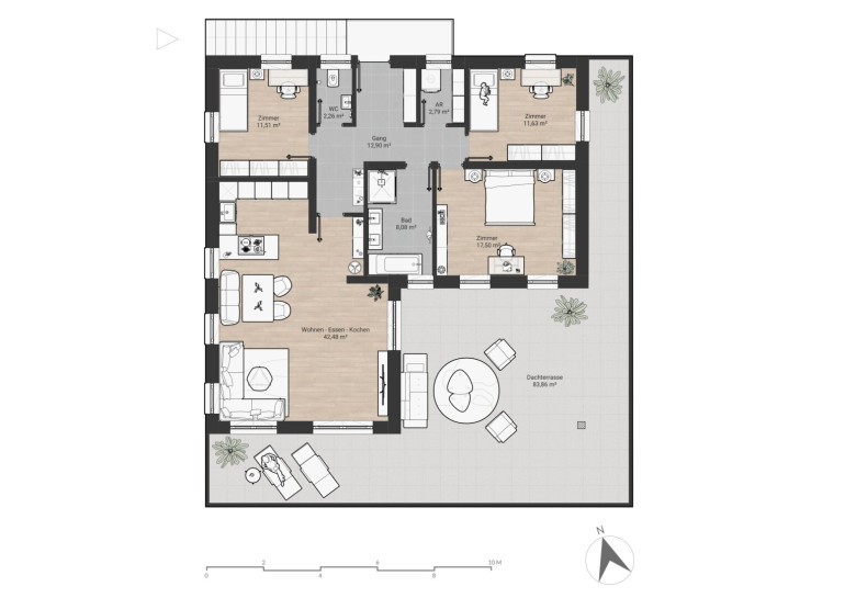 - Dachterrasse: 83,86 m²