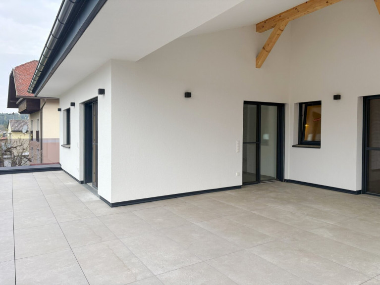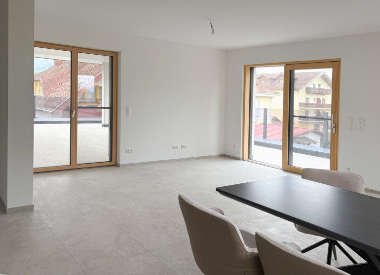 Diese traumhaft schöne Penthouse-Wohnung erstreckt sich über das gesamte Obergeschoss des Hauses. Die Wohnung bietet drei Schlafzimmer, ein Badezimmer, ein WC, einen Abstellraum und ein weitläufiges, helles Wohn-Esszimmer mit Küche. Die nach Süden ausgerichtete Dachterrasse garantiert entspannte Stunden mit einer atemberaubenden Aussicht auf die umliegende Berglandschaft des Jauntals und den Klopeiner See.
